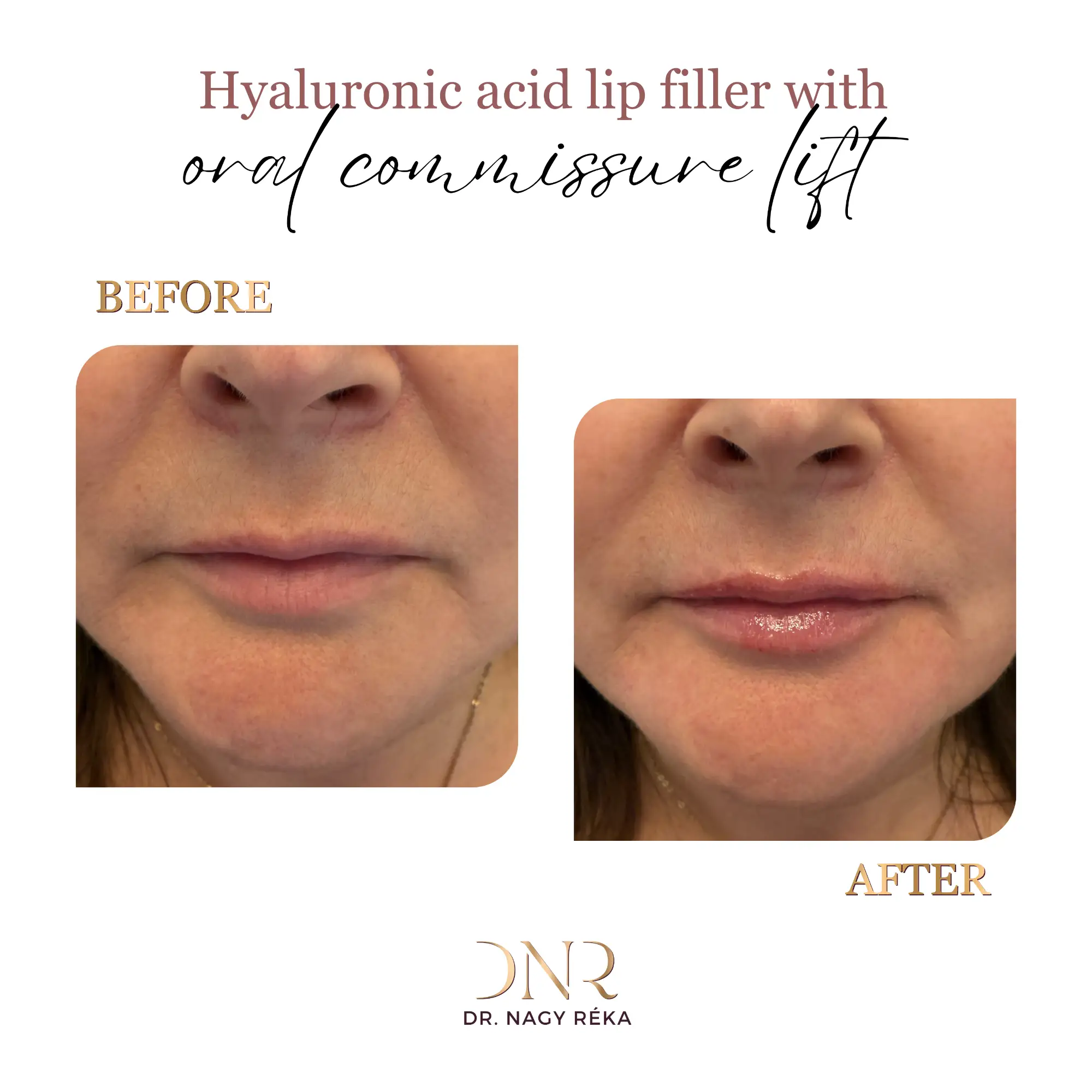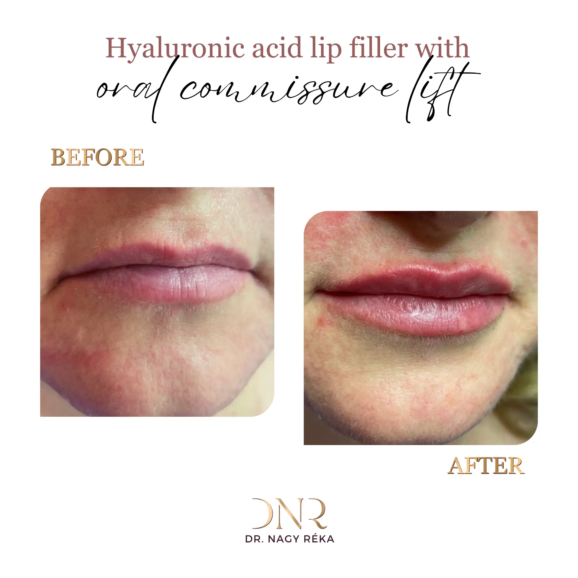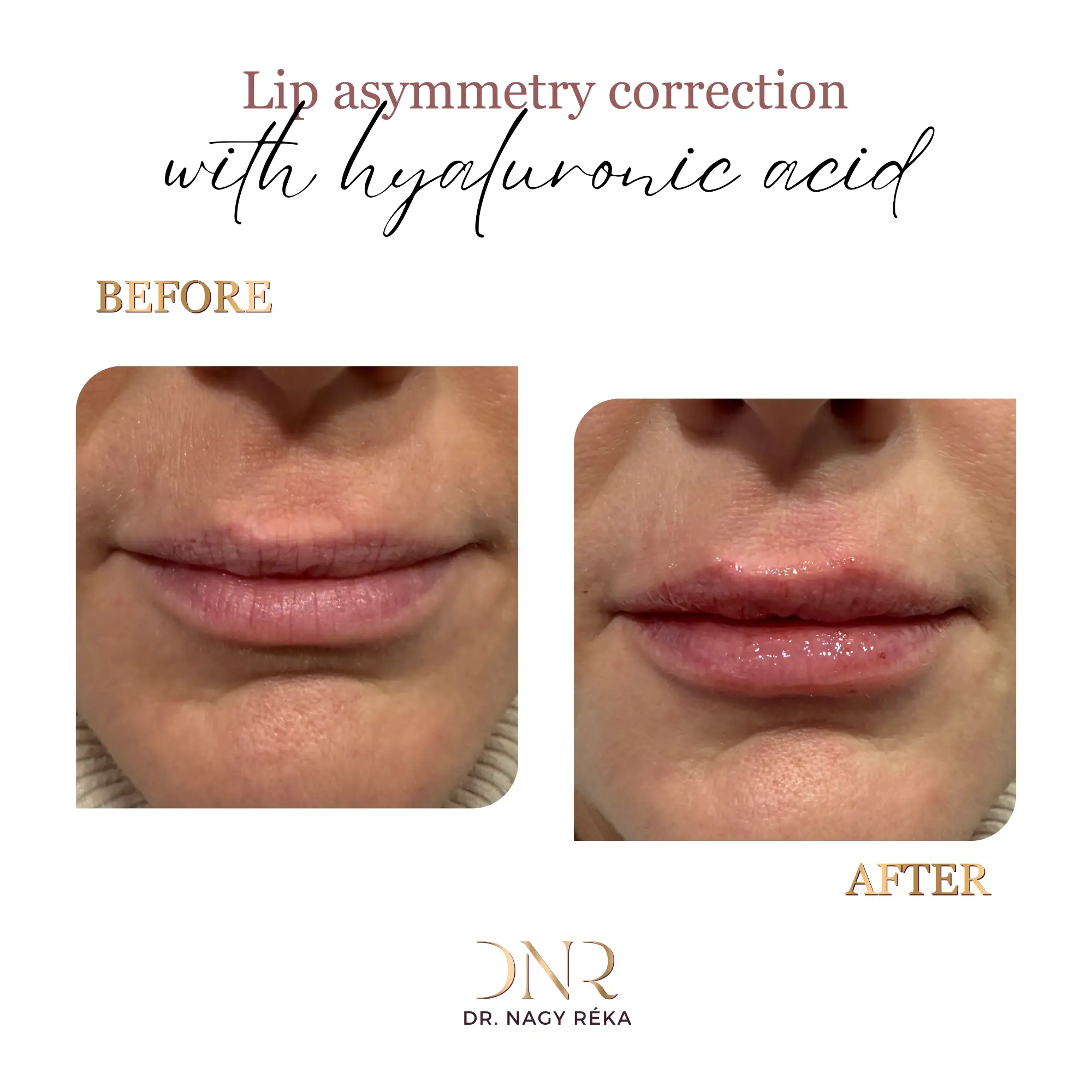 Natural-looking lip shaping, volume enhancement, and correction of asymmetry.